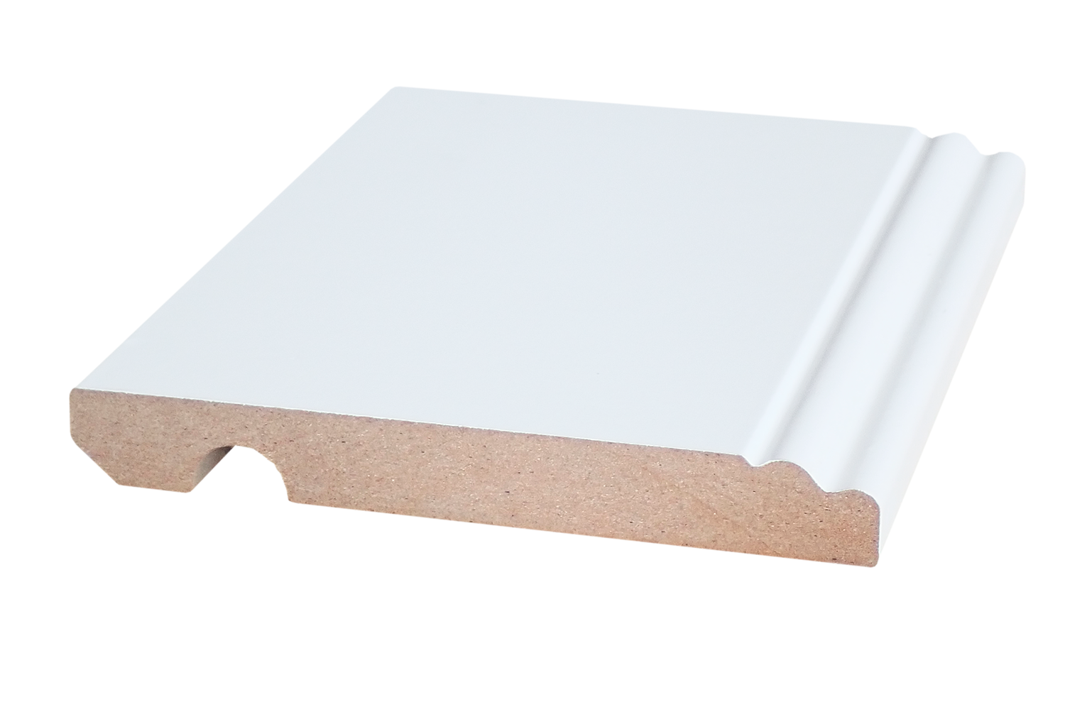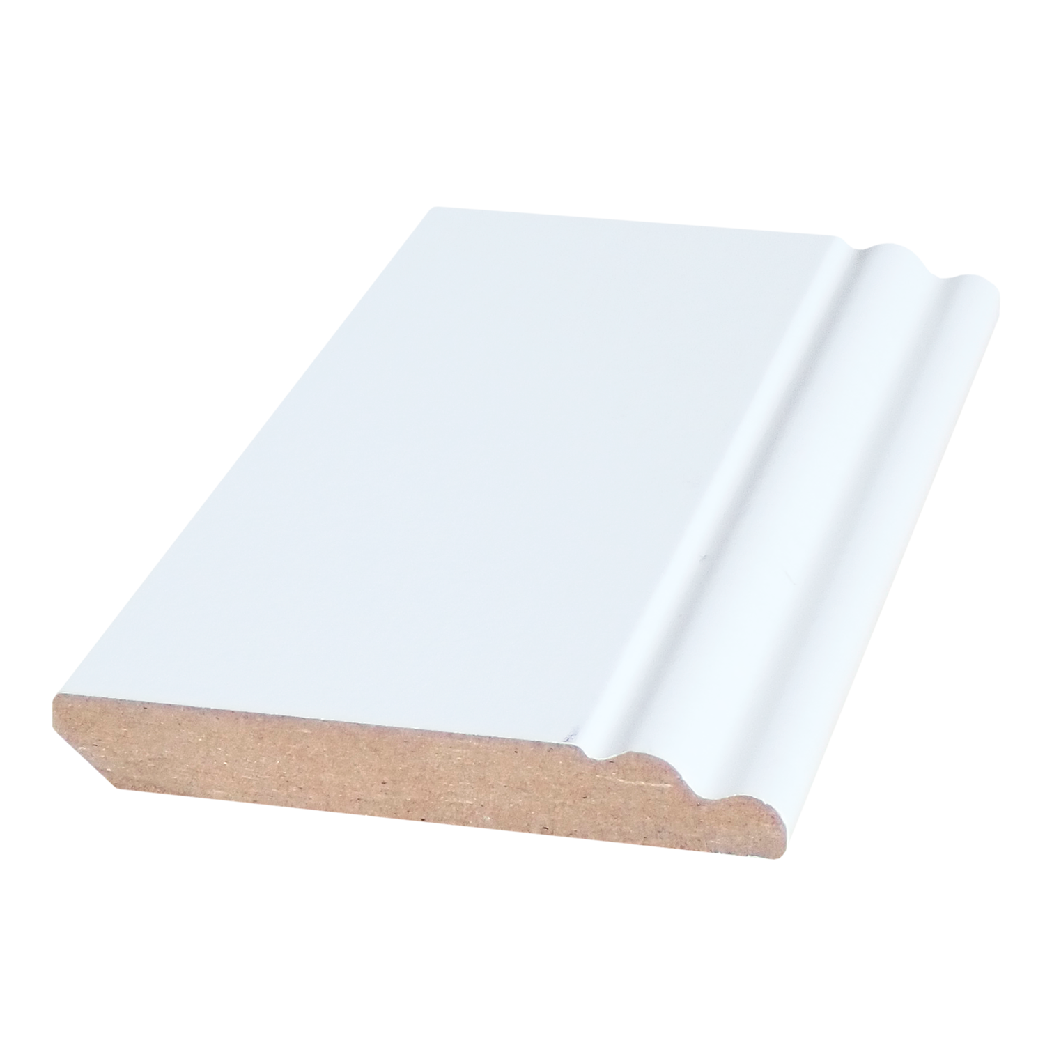 Rodapiés hechos de tableros MDF (tablero de fibra de densidad media). Fabricado a partir de residuos de madera. Material renovable y sostenible. Los rodapiés de madera MDF son elementos decorativos utilizados para embellecer y mejorar la apariencia de los interiores.